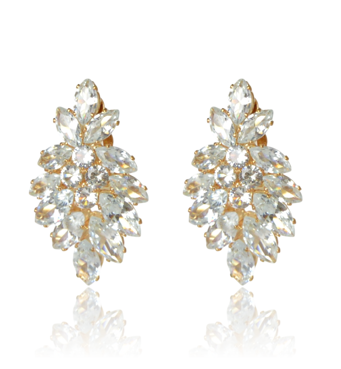 Każdy kamień został osadzony w delikatnej, złotej oprawie, która podbija ciepły blask biżuterii i nadaje jej luksusowego wykończenia. Dzięki swojej wypukłej formie klipsy idealnie przylegają do płatka ucha, tworząc spektakularny efekt „wow”. Wyposażone w wysokiej jakości mechanizm dociskowy, zapewniają stabilność i komfort noszenia nawet podczas całonocnych uroczystości. To doskonały wybór dla Panny Młodej, na bal, galę czy inne wielkie wyjścia, gdzie chcesz poczuć się wyjątkowo.