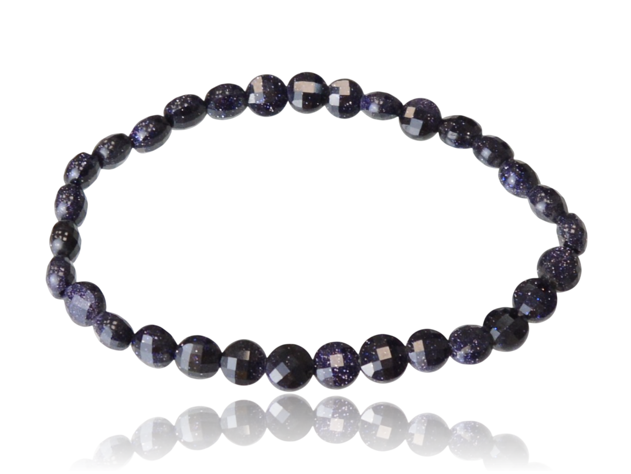 Elegancka bransoletka wykonana z kamienia noc kairu, szlifowanego w formie subtelnych, fasetowanych monetek o średnicy 6 mm. Jej głęboki, ciemnogranatowy kolor z tysiącami skrzących się drobinek przypomina rozgwieżdżone, nocne niebo.