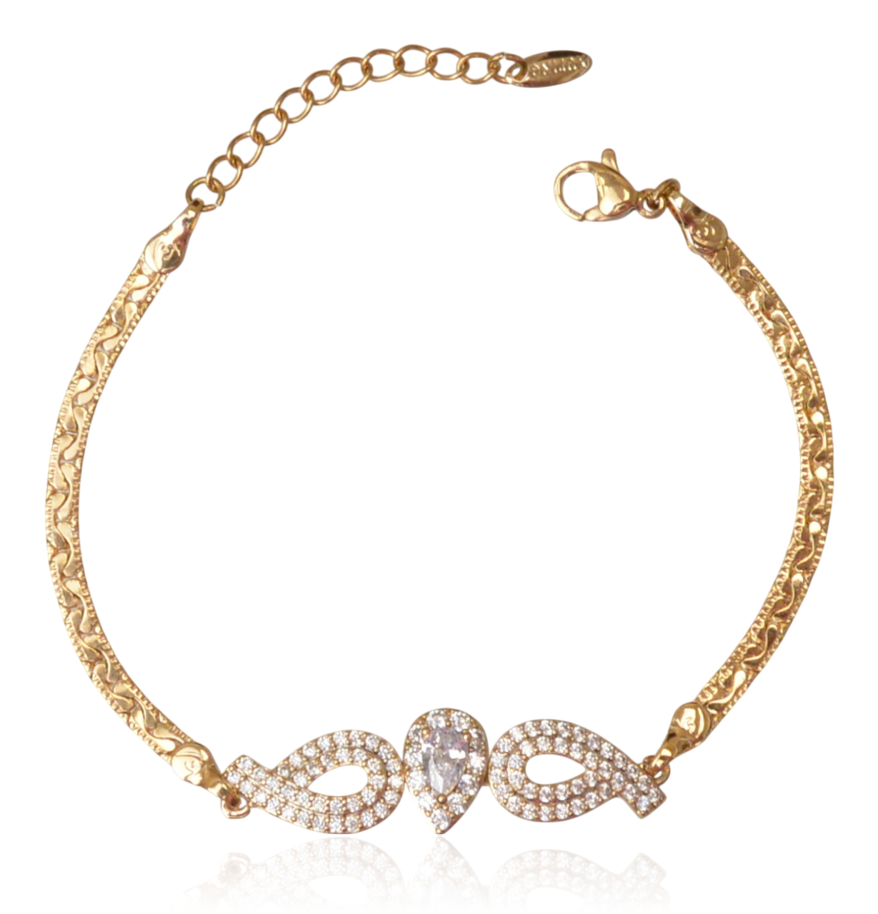 Bransoletka bismarck z miedzi pozłacanej z cyrkoniami