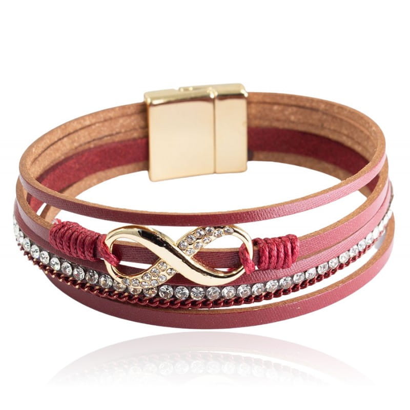 Bransoletka na magnes z rzemieni nieskończoność bordo