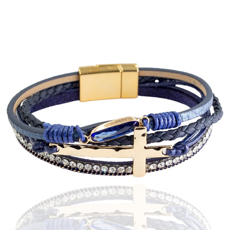 Bransoletka na magnes z rzemieni z krzyżem
