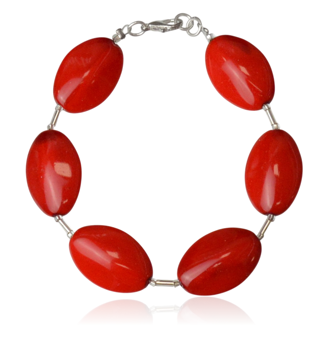 Elegancka bransoletka z czerwonych koralików w kształcie pestek to połączenie klasyki i wyrazistości. Jej głęboki kolor przyciąga spojrzenia, dodając każdej stylizacji wyjątkowego charakteru. Idealna jako prezent dla osoby ceniącej prostotę z nutą elegancji.