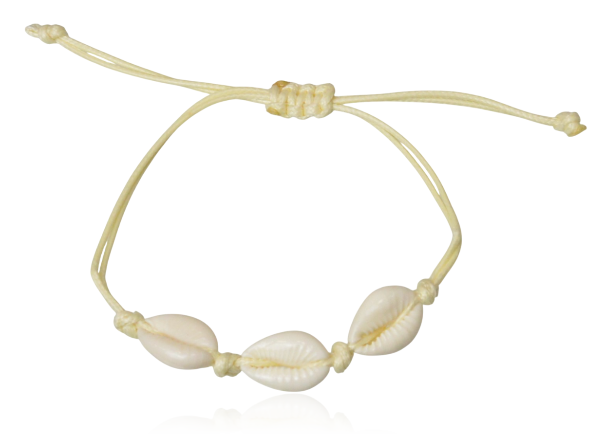 Bransoletka z muszelkami na kremowym rzemieniu