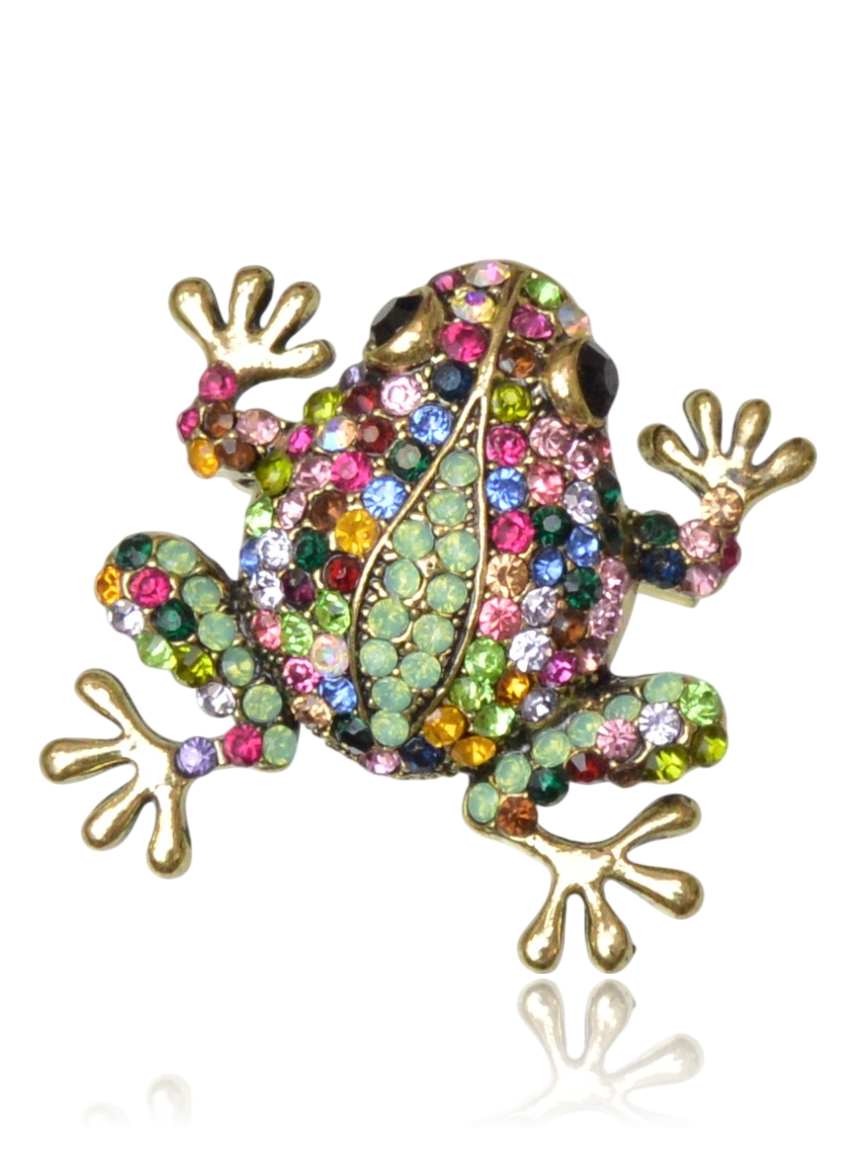 Broszka 2w1 żabka wysadzana kolorowymi cyrkoniami