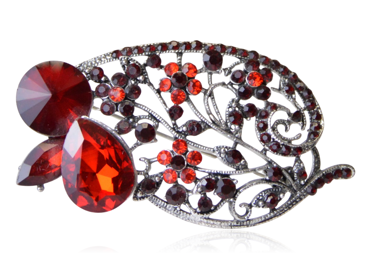 Broszka ażurowy kwiatowy motyw cyrkonie wino