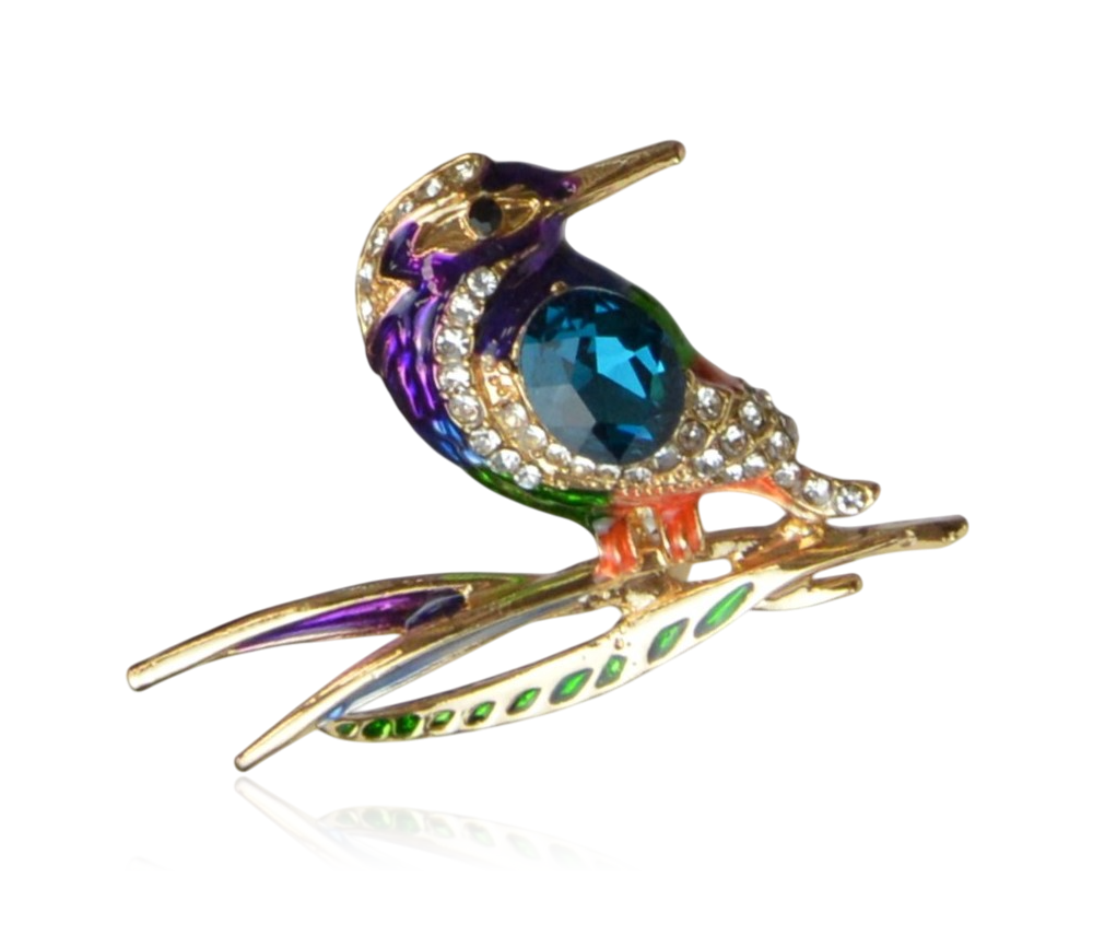Broszka kolorowy koliber emalia z cyrkoniami