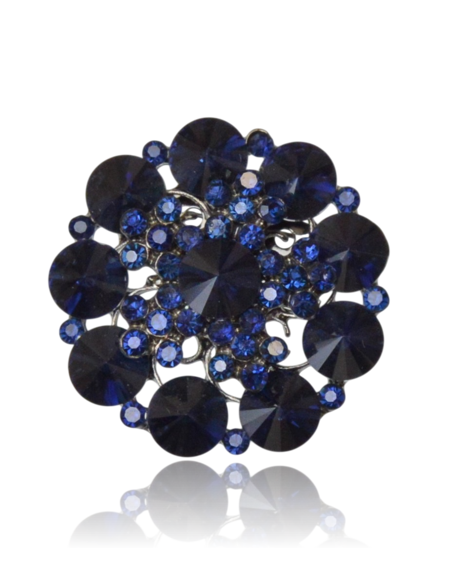 Broszka kwiat wysadzany kryształami - granatowy