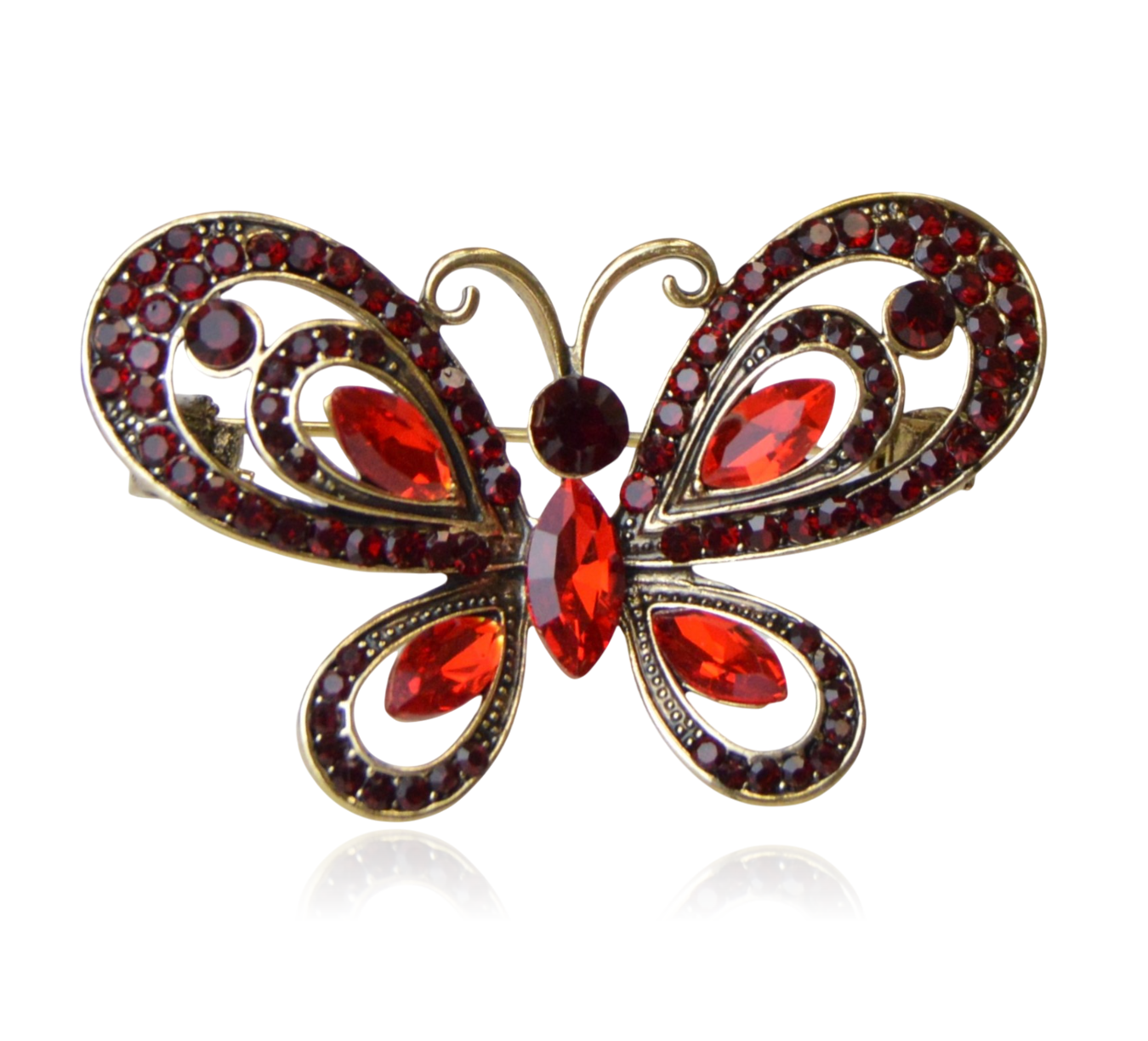 Broszka motyl z bordowo-czerwonych cyrkonii