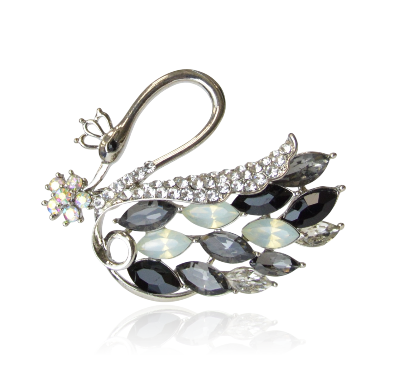 Broszka srebrny łabędź z czarno-szarymi cyrkoniami