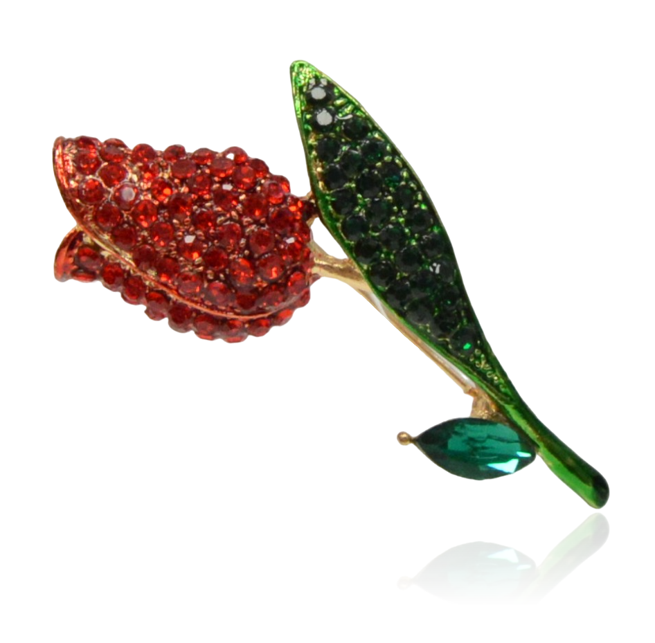 Broszka tulipan z czerwonymi i zielonymi cyrkoniami