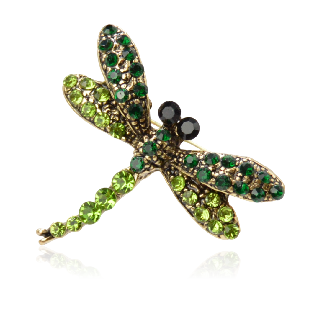 Broszka ważka z cyrkonii w odcieniach zieleni