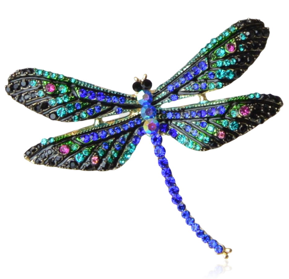 Broszka ważka złota z kolorowymi cyrkoniami