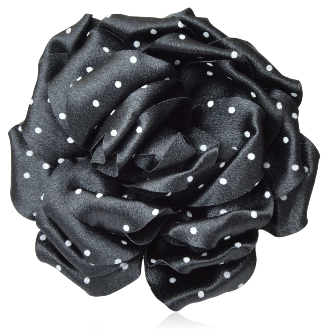 Elegancki czarny kwiat w białe kropeczki – subtelny akcent do włosów i ubrań.