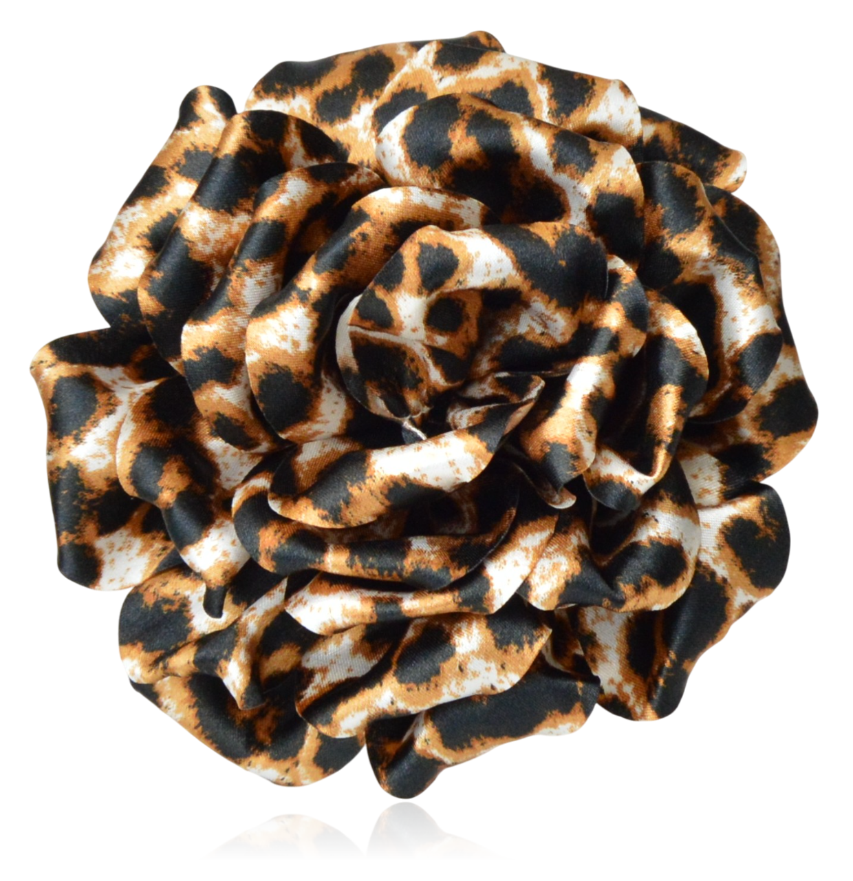 Broszko-spinka kwiat satynowany w panterkę 12 cm