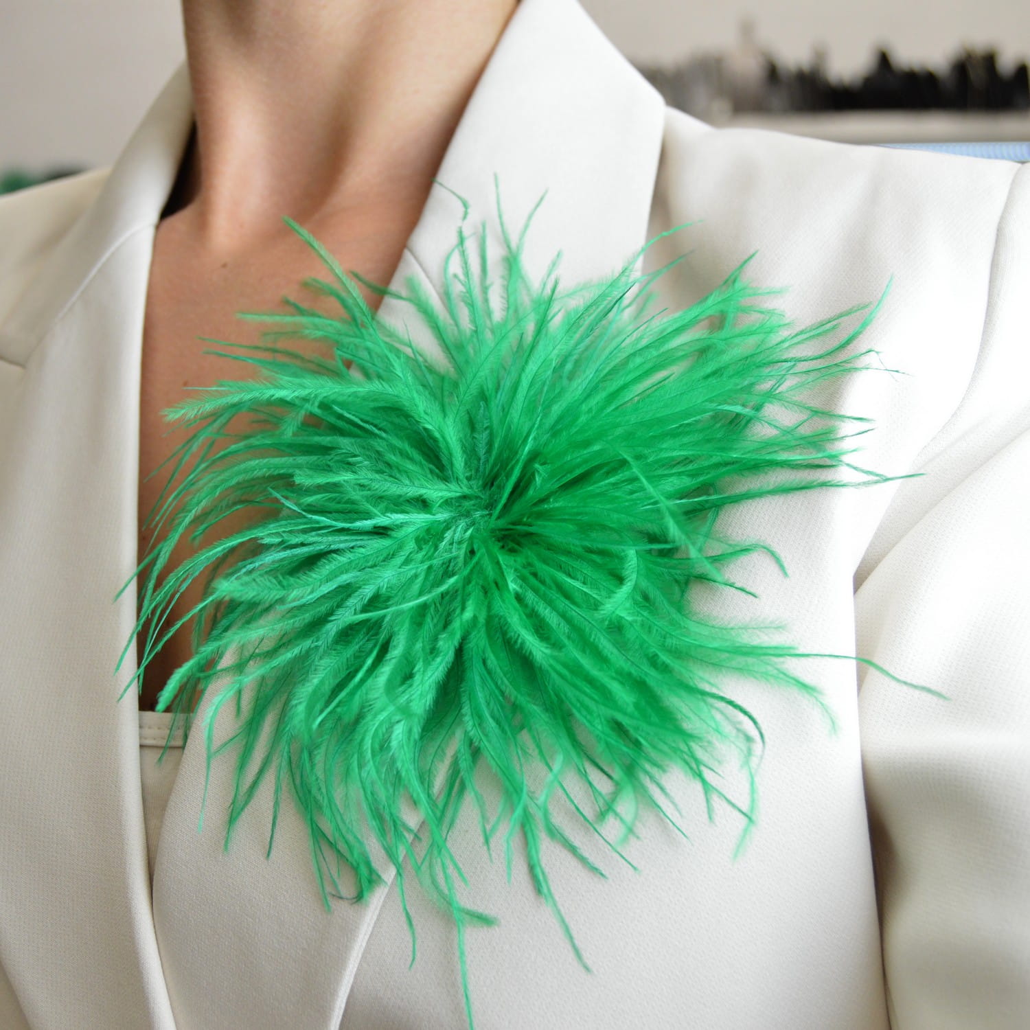 Broszko-spinka pióra marabut malachitowy