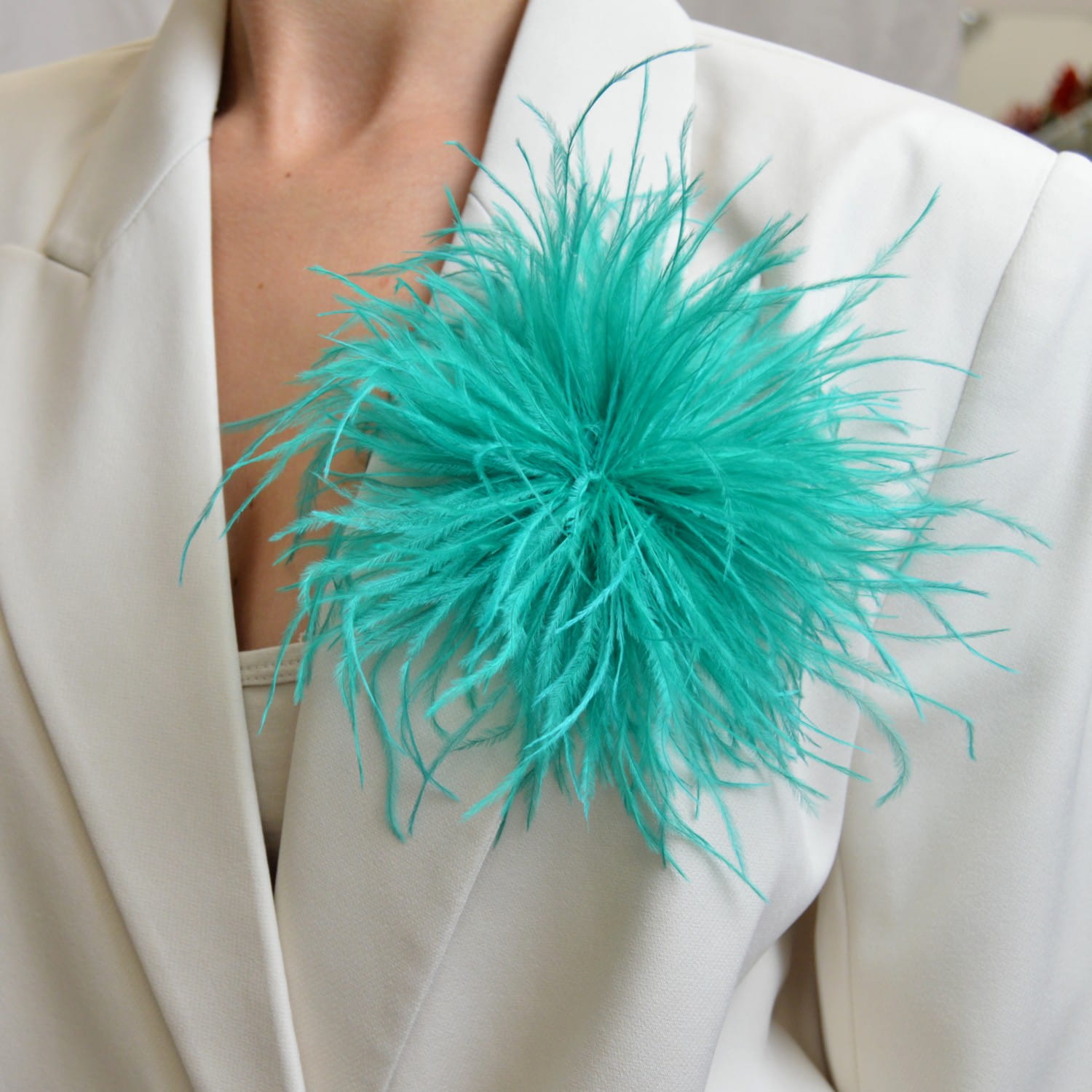 Broszko-spinka pióra marabut turkusowy