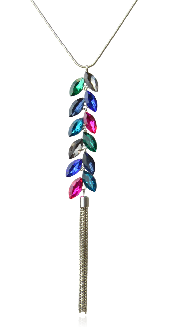 Długi srebrny wisior z kolorową kryształową przywieszką