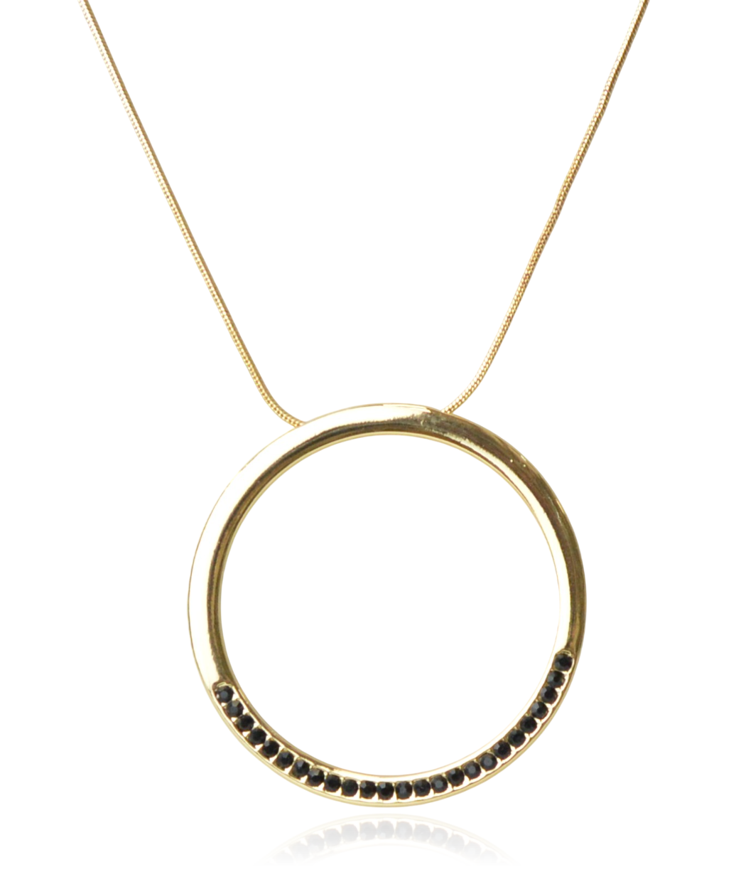 Długi złoty wisior z przywieszką z czarnymi cyrkoniami