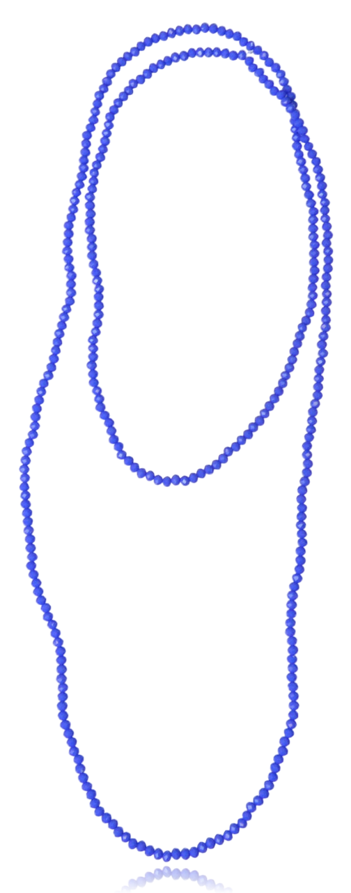 Długi, lśniący naszyjnik z drobnych, fasetowanych kryształków w odcieniu szafirowym. Idealny do noszenia podwójnie – zapewnia efekt migotania przy każdym ruchu.