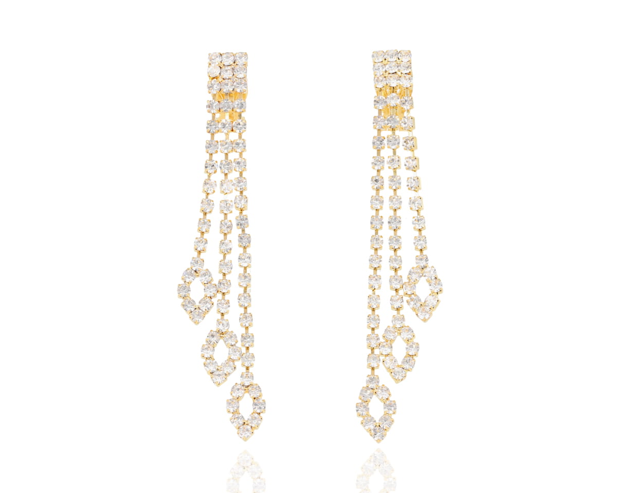 Klipsy cyrkoniowe nitki zakończone łezkami złote