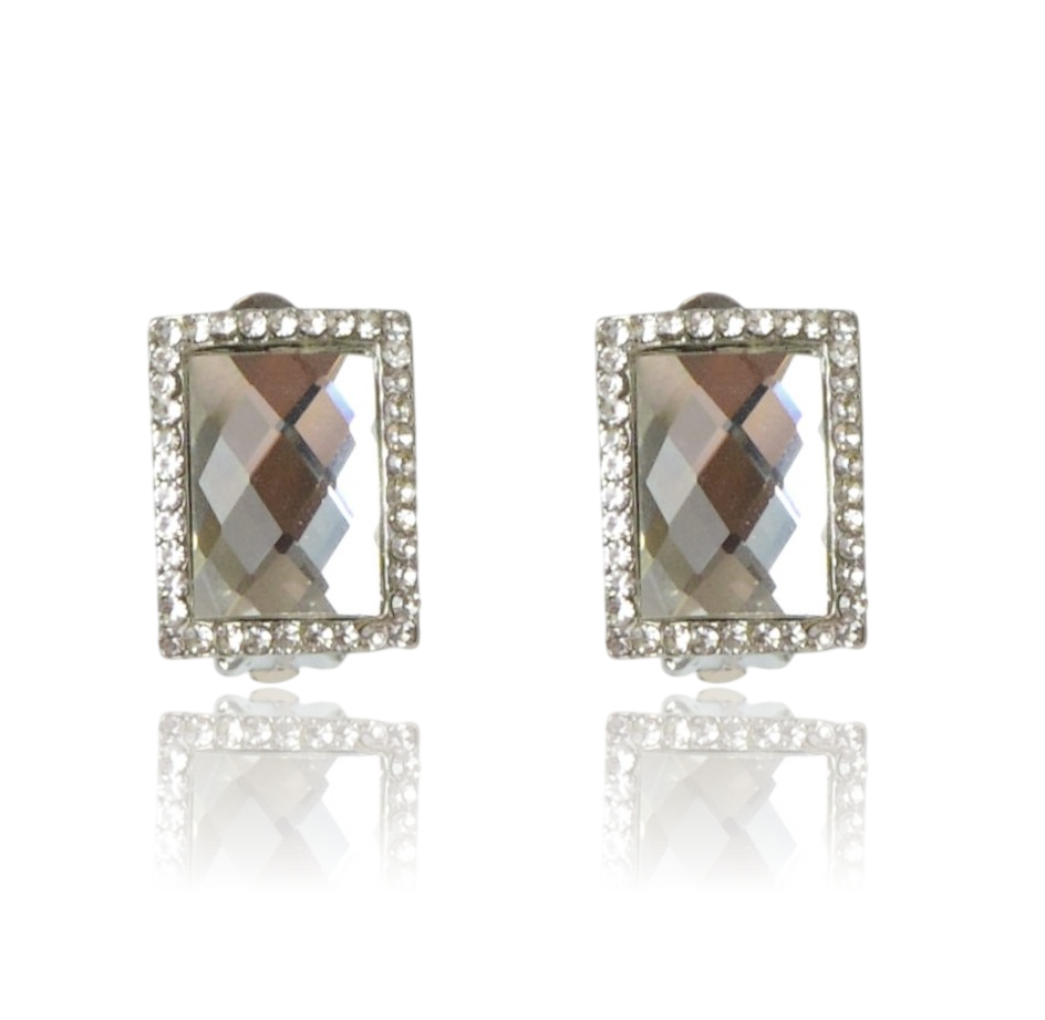 Klipsy kryształowe prostokątne srebrne