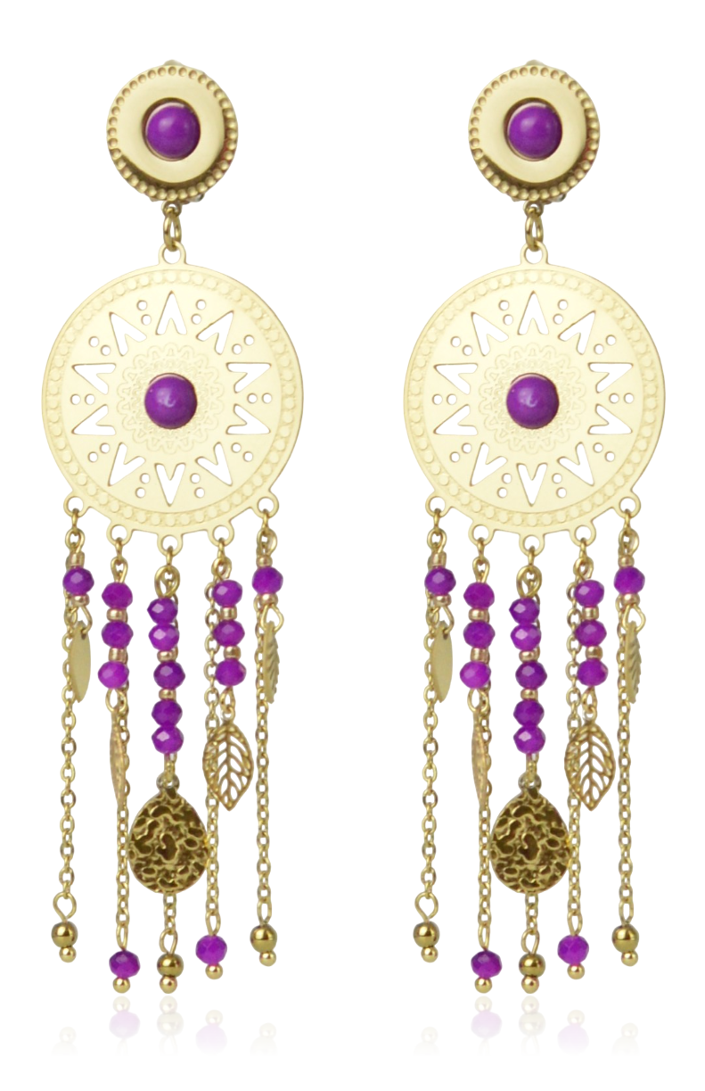 Klipsy łapacze snów stalowe złote z biskupimi koralikami