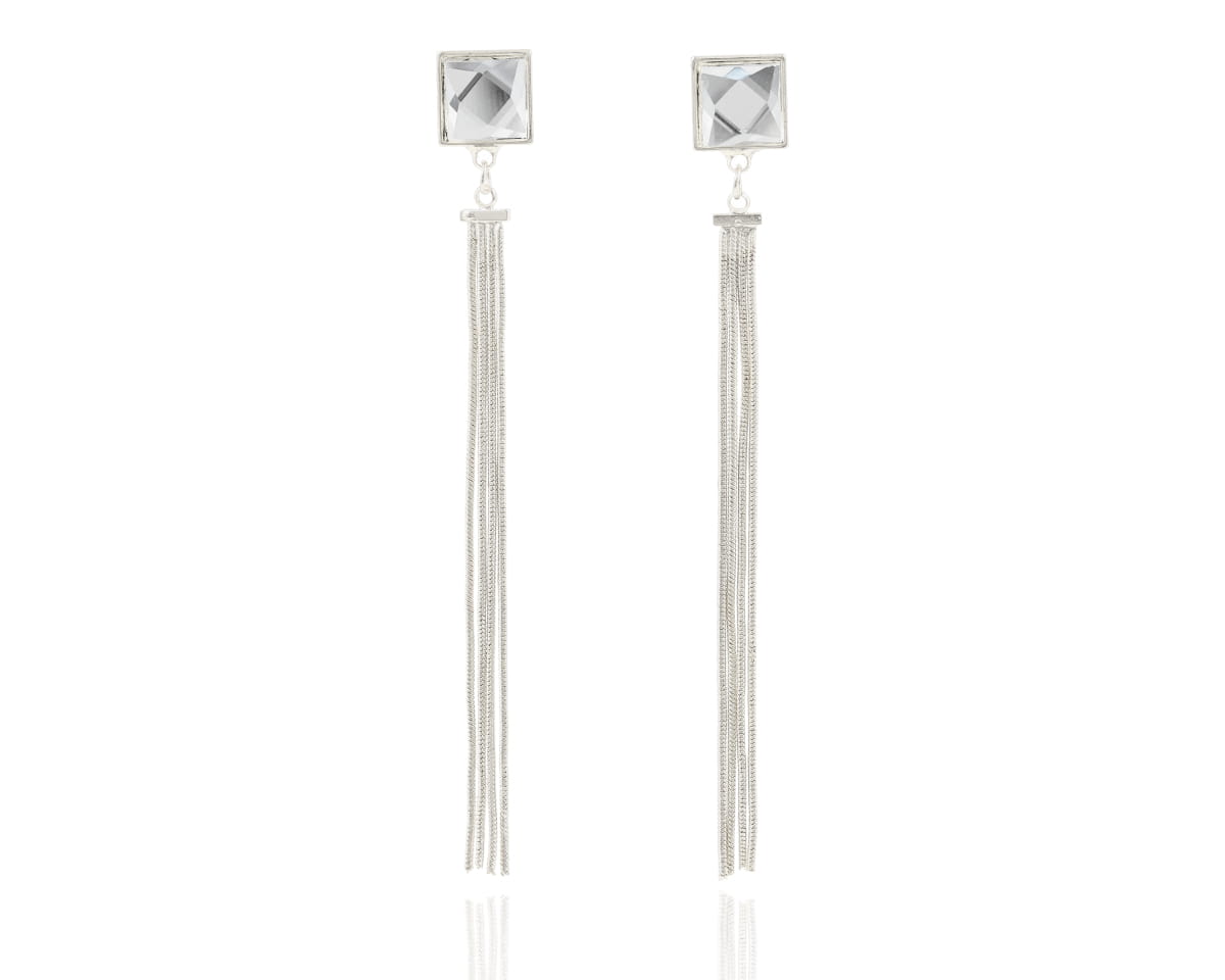 Klipsy na kryształowym zapięciu łańcuszki srebrne