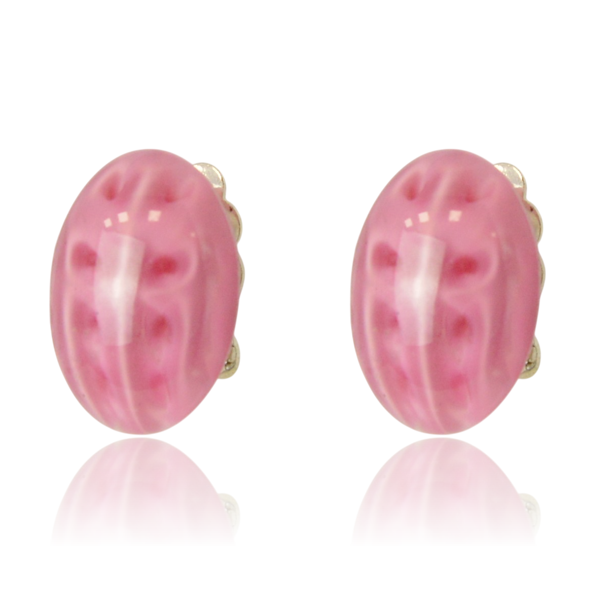 Stylowe klipsy o idealnie gładkiej, lśniącej powierzchni, wykonane z wysokiej jakości różowego akrylu. Wnętrze owalnych form zdobi unikalny, zatopiony wzór przypominający marmurkową strukturę, co nadaje im artystycznego wyrazu.