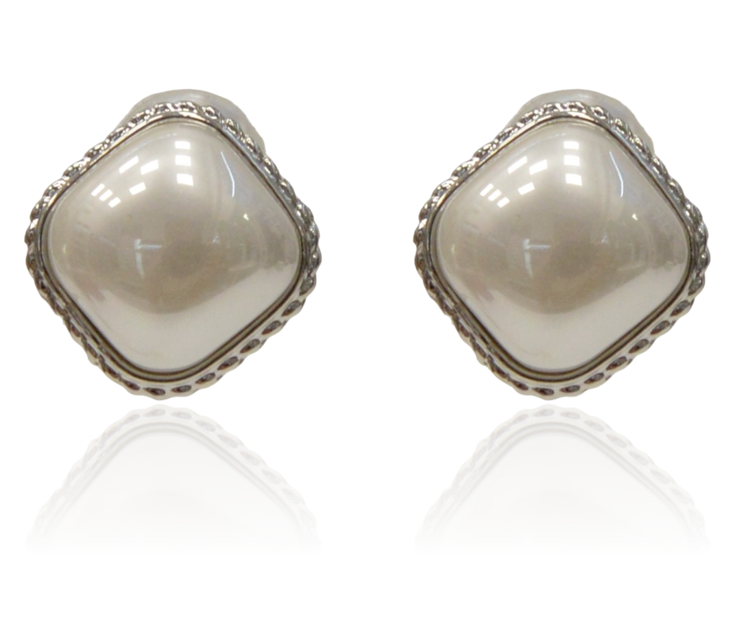 Klipsy perłowe romby w srebrnej oprawie