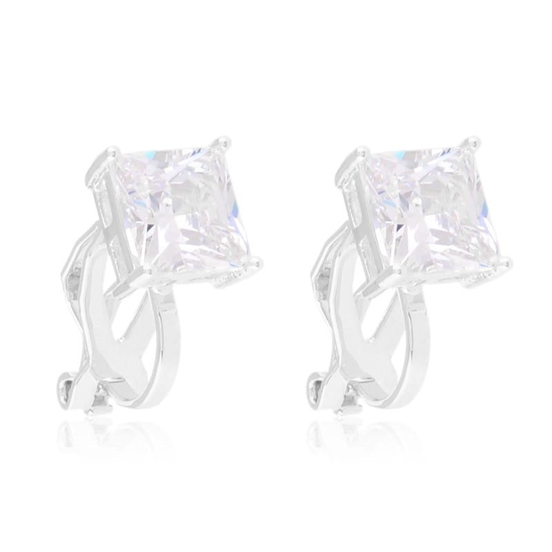 Klipsy stalowe srebrne z kwadratowym kryształem