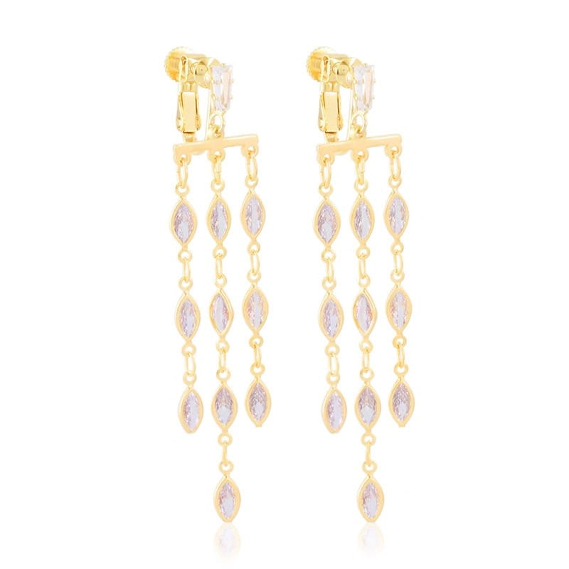 Klipsy wiszące kaskadowe z cyrkonii złote