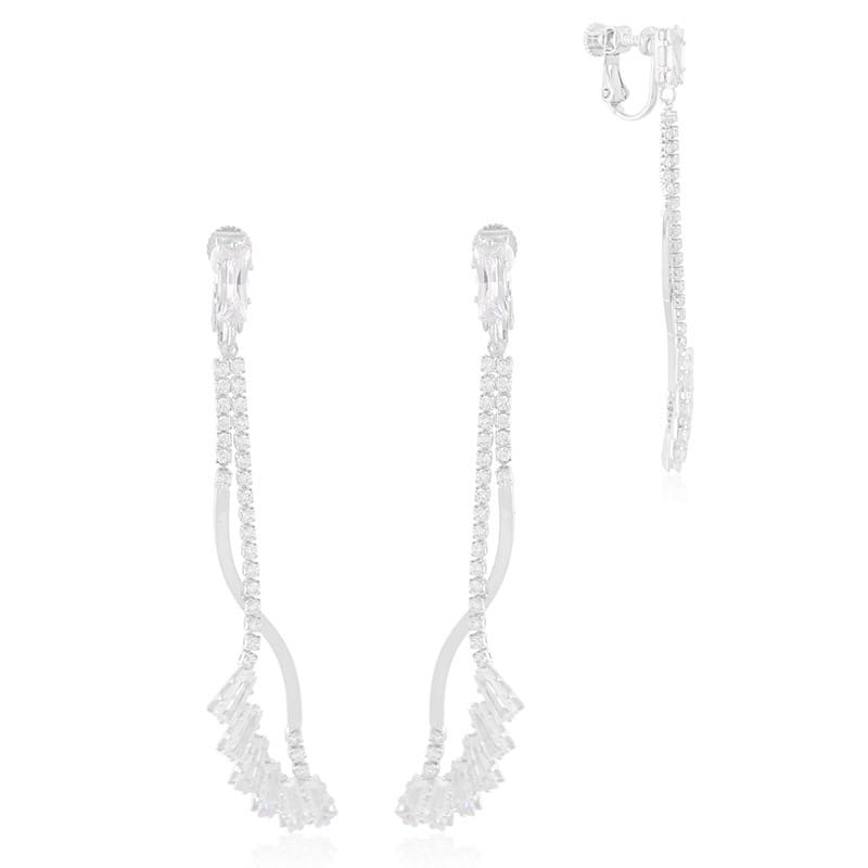 Klipsy wiszące nieregularne z cyrkoniami kubicznymi srebrne