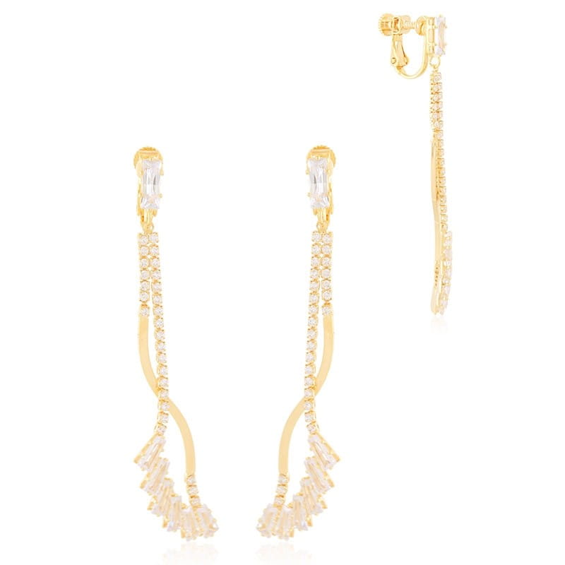Klipsy wiszące nieregularne z cyrkoniami kubicznymi złote