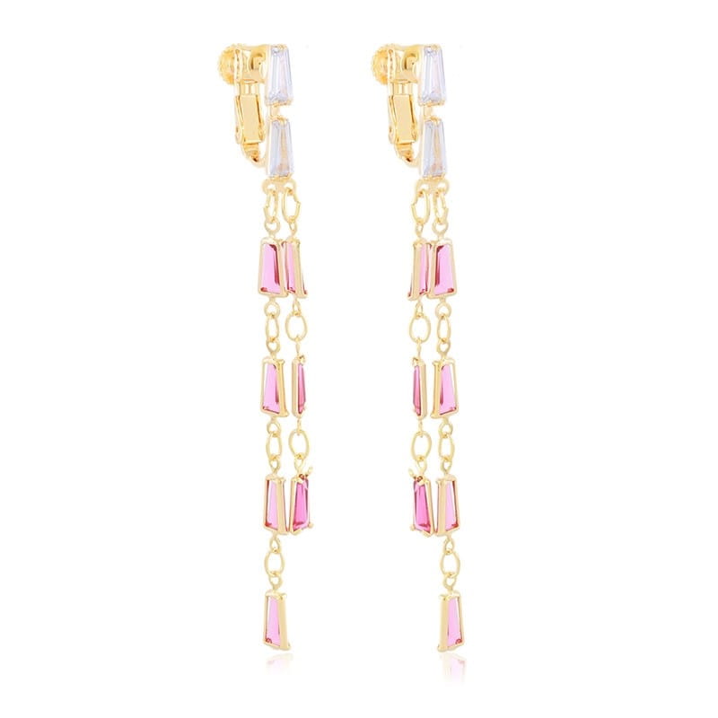 Klipsy wiszące z cyrkoniami złoto-malinowe
