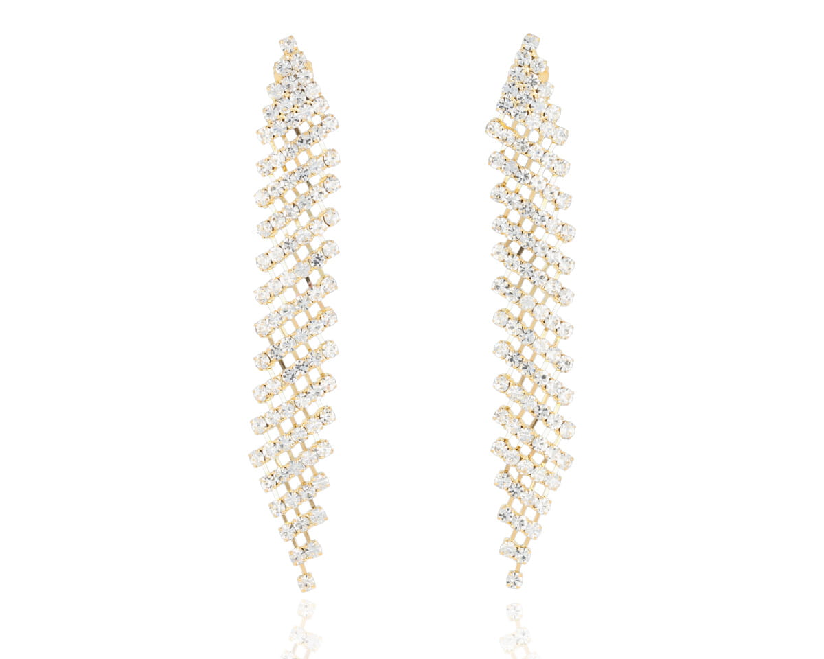 Klipsy wiszące z cyrkonii złote