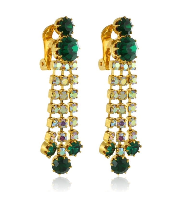 Klipsy wiszące z opalizujących i zielonych cyrkonii