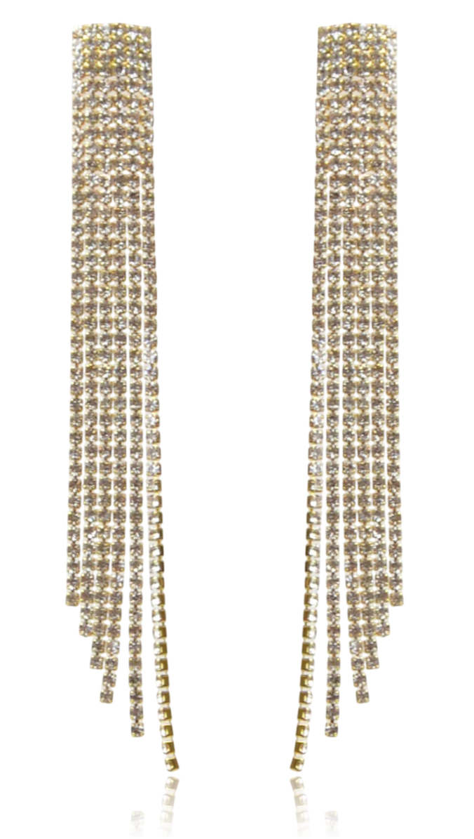 Spektakularne kolczyki na wielkie wyjścia, tworzące szeroką "zasłonę" z sześciu rzędów lśniących cyrkonii. Długość 11,7 cm i szerokość 1,2 cm gwarantują maksymalny efekt glamour. Idealne na Sylwestra, Wesele i Bal.