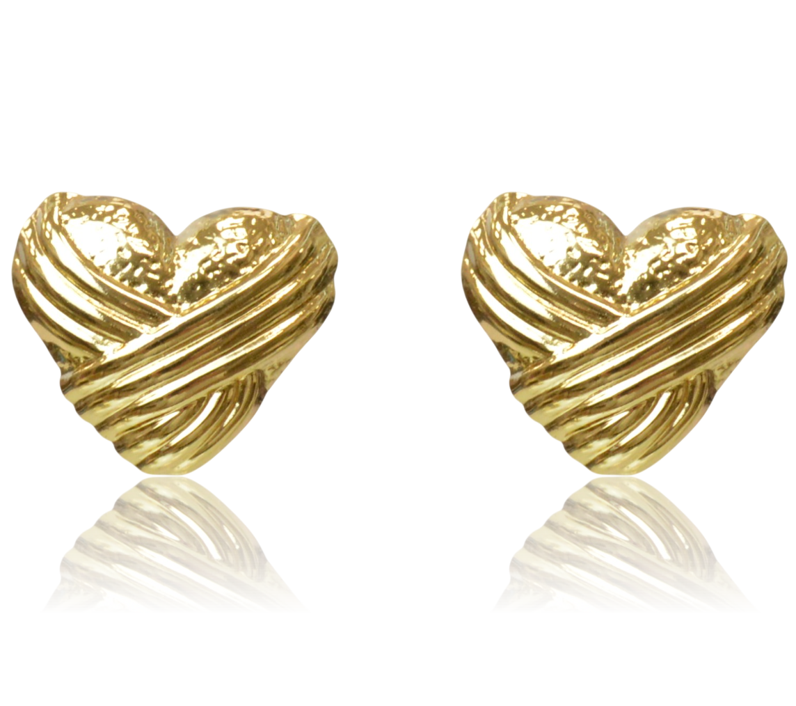 Urocze, a jednocześnie luksusowe sztyfty w kształcie serca. Wykonane ze stali szlachetnej 316L w kolorze złota, z wyjątkową, plecioną fakturą. Dodadzą Twojej stylizacji romantycznego blasku i elegancji. Idealne na prezent.
