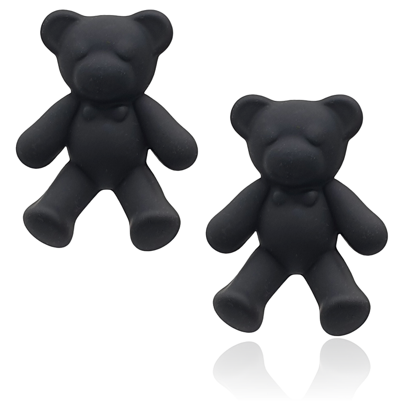 Kolczyki akrylowe misie na sztyfcie czarne