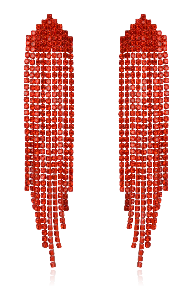 Eleganckie kolczyki w formie cyrkoniowych nitek w intensywnym czerwonym kolorze, które doskonale przyciągają wzrok. Ich unikalny design łączy delikatność z blaskiem, tworząc efektowny akcent, idealny na wyjątkowe okazje.