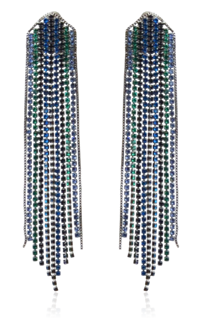 Kolczyki cyrkoniowe nitki niebiesko-zielone kaskadowe