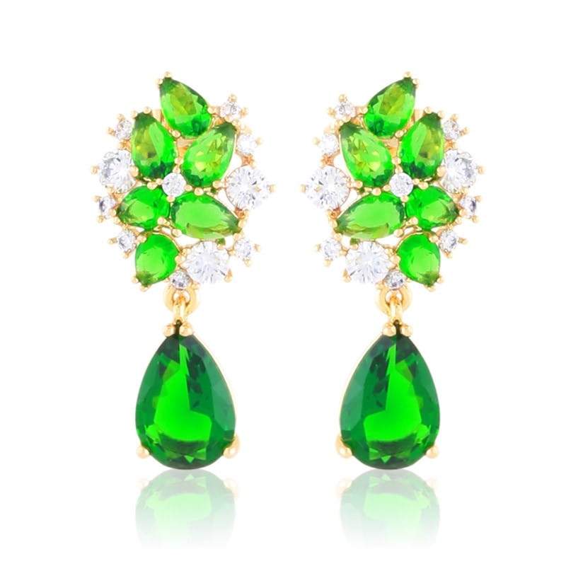 Kolczyki cyrkoniowe zielone miedź pozłacana
