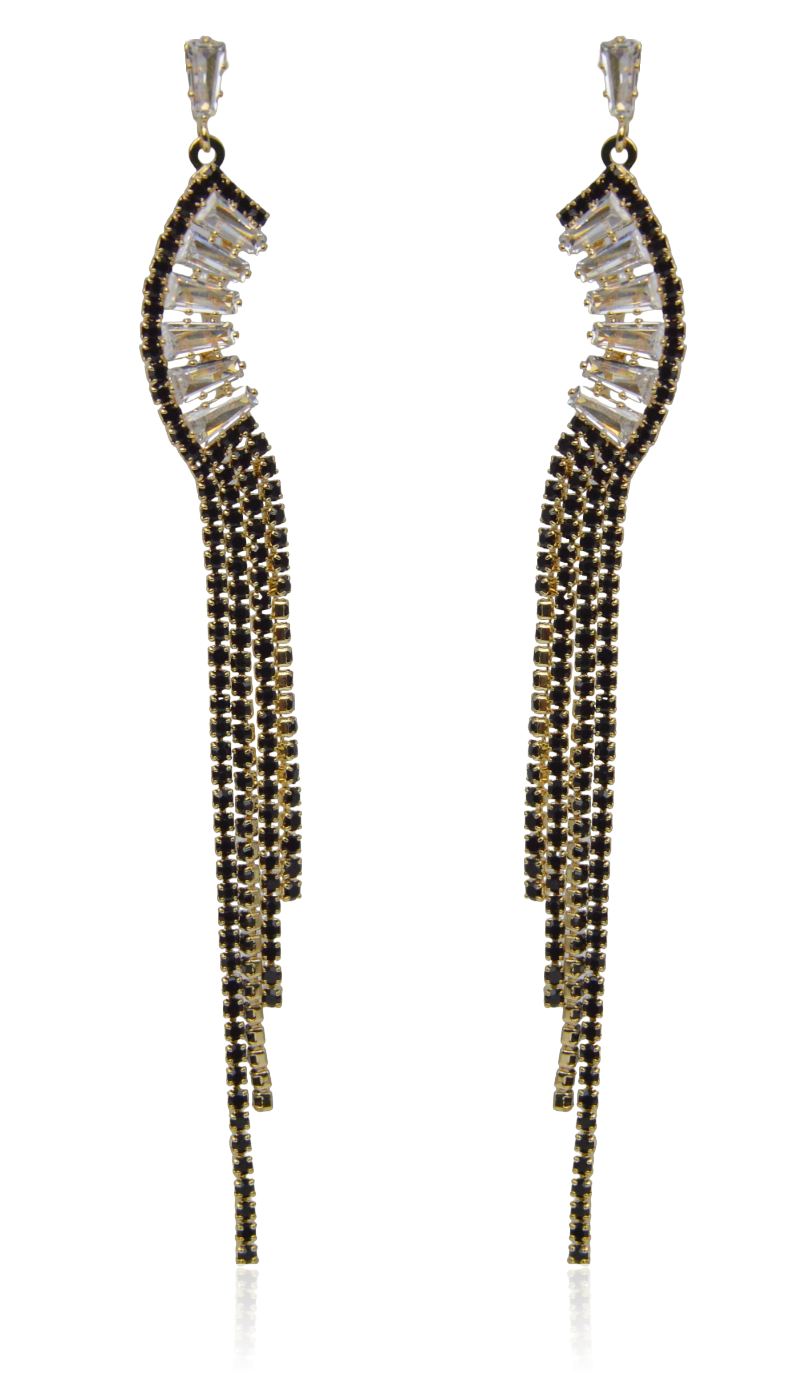 Kolczyki kaskadowe cyrkoniowe czarno-złote