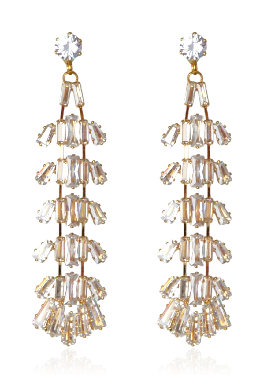 Kolczyki kaskadowe z cyrkonii kubicznej w złotej oprawie