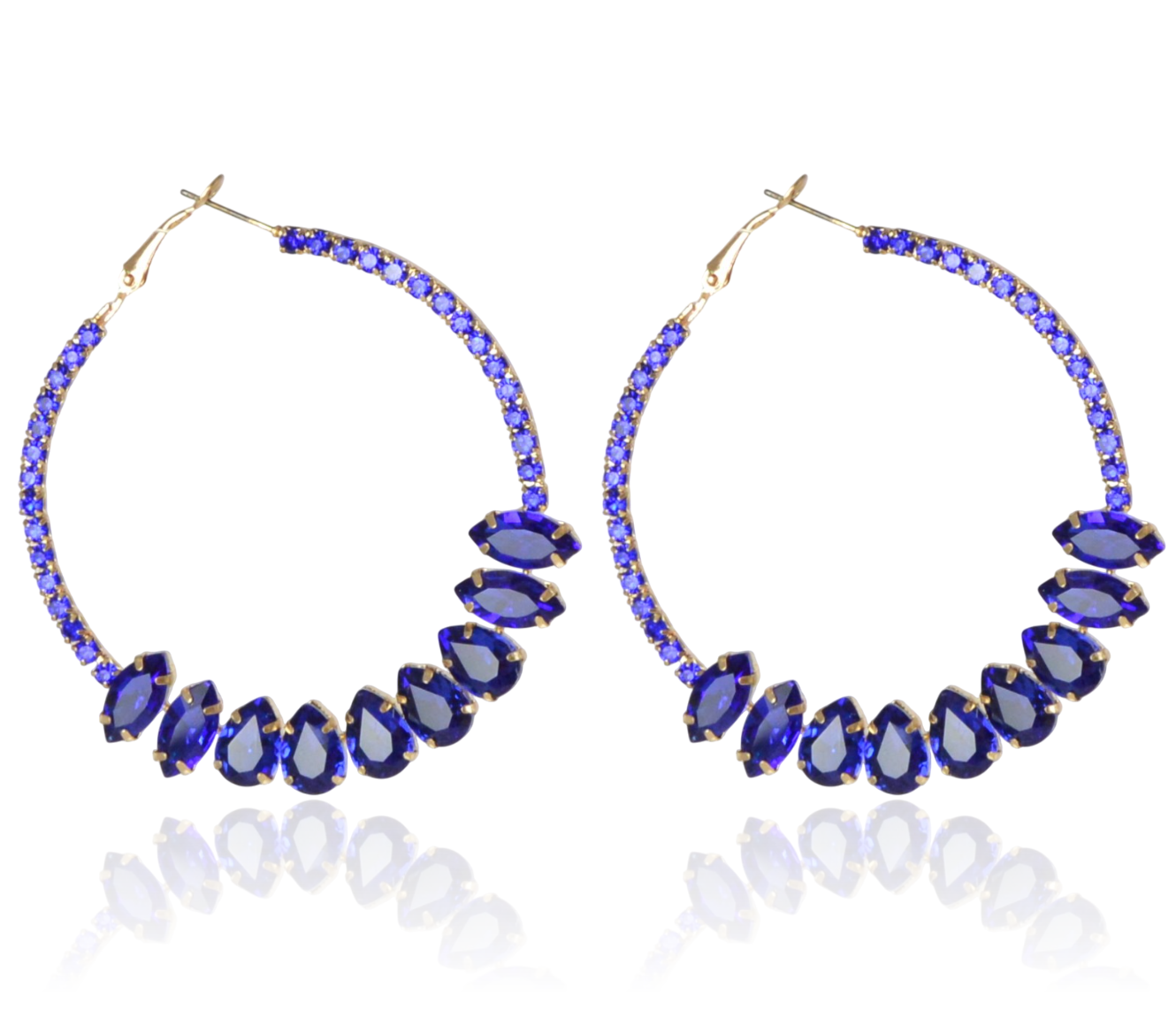Kolczyki koła zdobione po bokach kryształkami kobaltowe