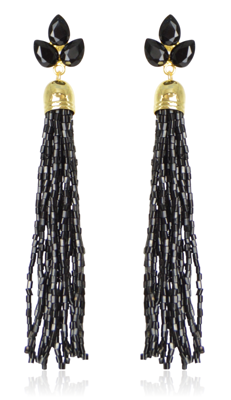 Kolczyki kryształkowe frędzle na ozdobnym sztyfcie czarne