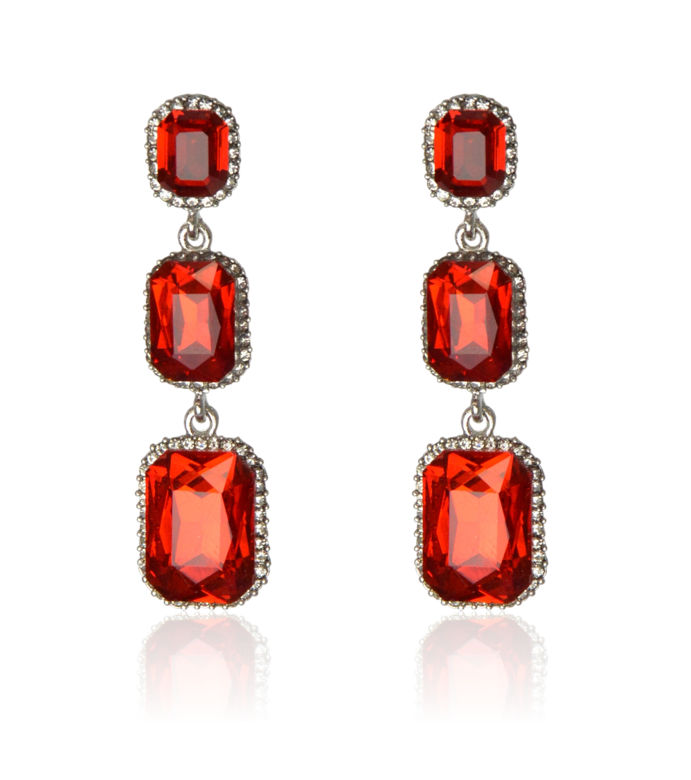 Kolczyki kryształowe czerwono-srebrne