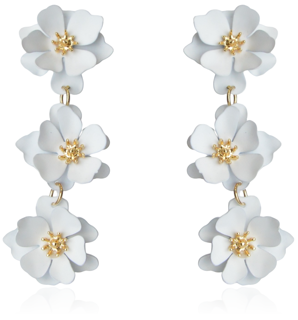 Kolczyki kwiatowe metalowe emaliowane białe