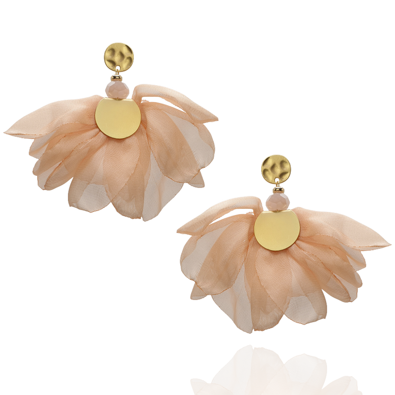Kolczyki kwiatowe z tkaniny brzoskwiniowe