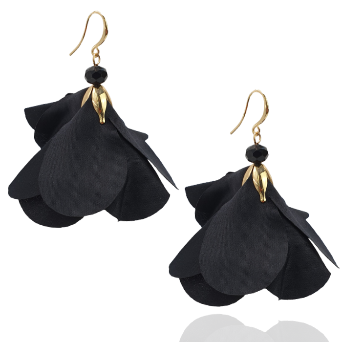 Kolczyki kwiaty z tkaniny czarne